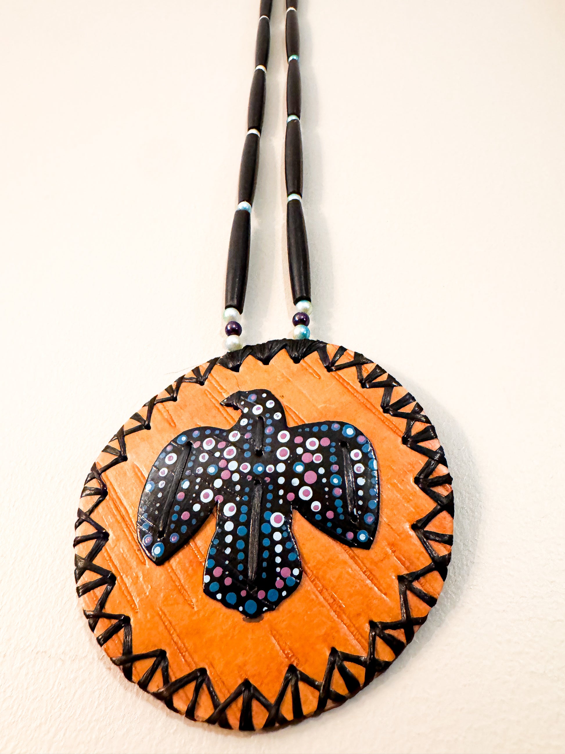 This spotted thunderbird representation celebrates the might and boldness reflect to that of the mighty thunderbird on a 4” medallion
